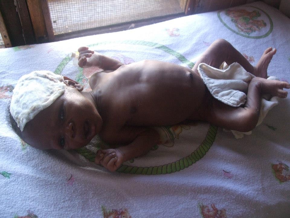 While waiting to be matched with a child, their son, whom they wouldn’t learn about for a few more months, was born. Benjamin Praise Kakande came into the world on November 10, 2012 outside of Jinja in Uganda, Africa. His biological mother died during childbirth, and his father was unemployed and unable to care for him. Since the mother was not around to breastfeed, and the father not able to afford formula to feed him on a regular basis, Praise became very sick, malnourished, and weak. At six-weeks old, he was taken to a small remote clinic by an aunt, where they tried to place an IV in his head to begin nourishing him. He was too small and weak to have the IV placed elsewhere. The IV was left in one spot for too long and caused a bad infection on his head. After developing the infection, Praise was transferred to a hospital where they nursed him to a state where he could survive some pretty intense surgeries to remove the infection. At three months old, the hospital did two emergency surgeries, removing about 40% of the skin from his skull. After another month of healing, doctors performed a skin graft by taking skin from his thigh, and fusing it directly to his skull. In his first several months of life, he spent 3 months in hospitals and clinics, having three major surgeries.