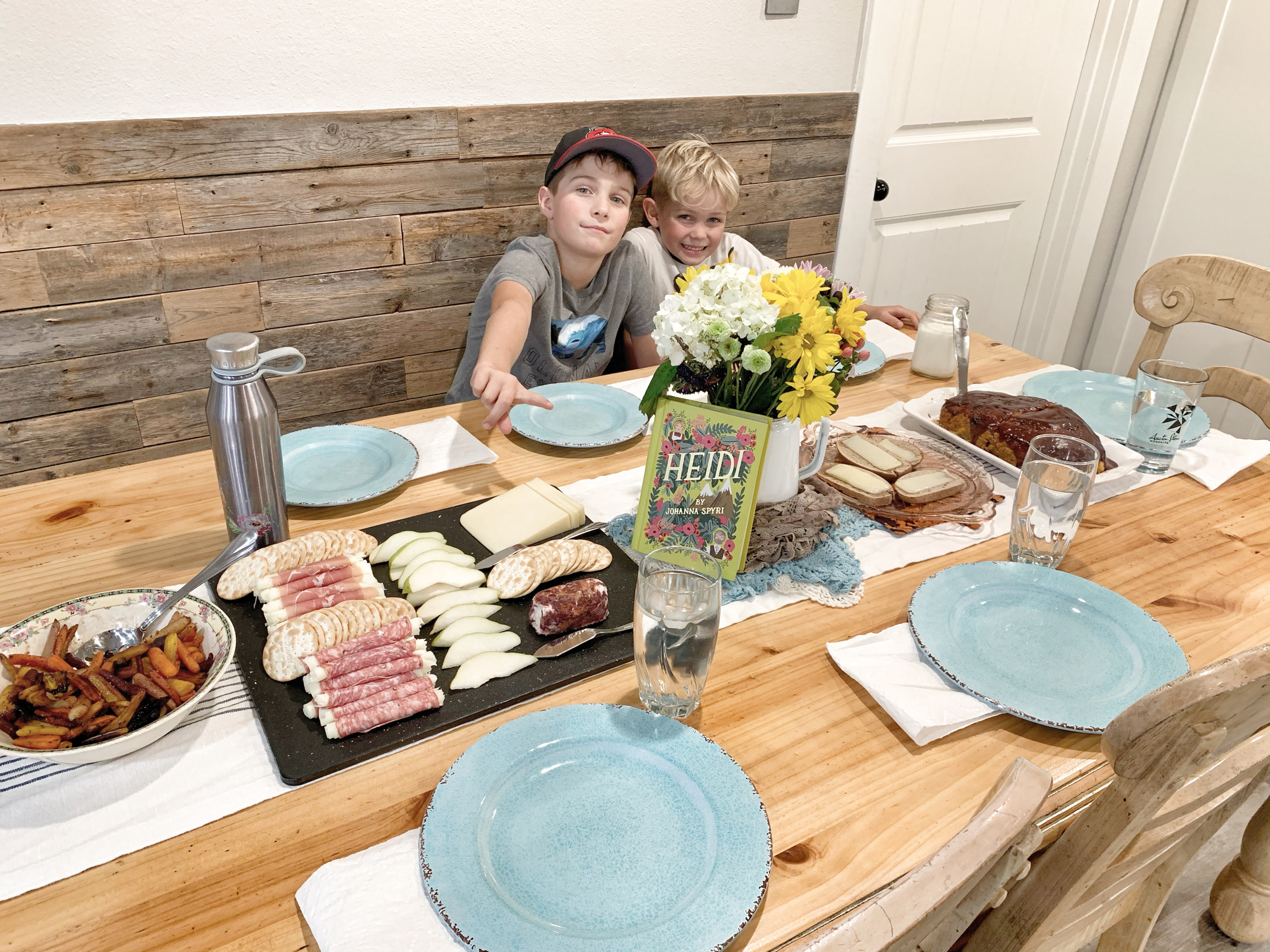 We invited the kids’ Nammaw and Pappaw to join our celebration and the main course was not necessarily Heidi-related, but a few fun sides were intentionally chosen! (I do recommend this Cheddar Stuffed Sweet Potato Meatloaf and Roasted Rainbow Carrots with Maple Glaze, though!)