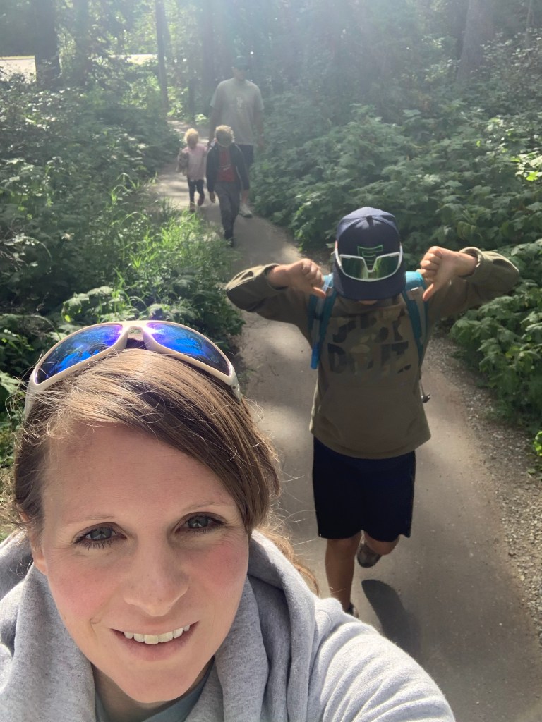We ate turkey sausage tacos and the boys played baseball while Nick and C napped, and I washed and dried some of our clothes. I put a harvest chili recipe in the instant pot on slow cooker setting, and we loaded up to go back to some more planned hikes at St. Mary, but a steady thunderstorm deterred us. Instead we went into the St. Mary visitor center and viewed their many displays about the Native American tribes in the area- it was interesting and a good option since we couldn’t hike.