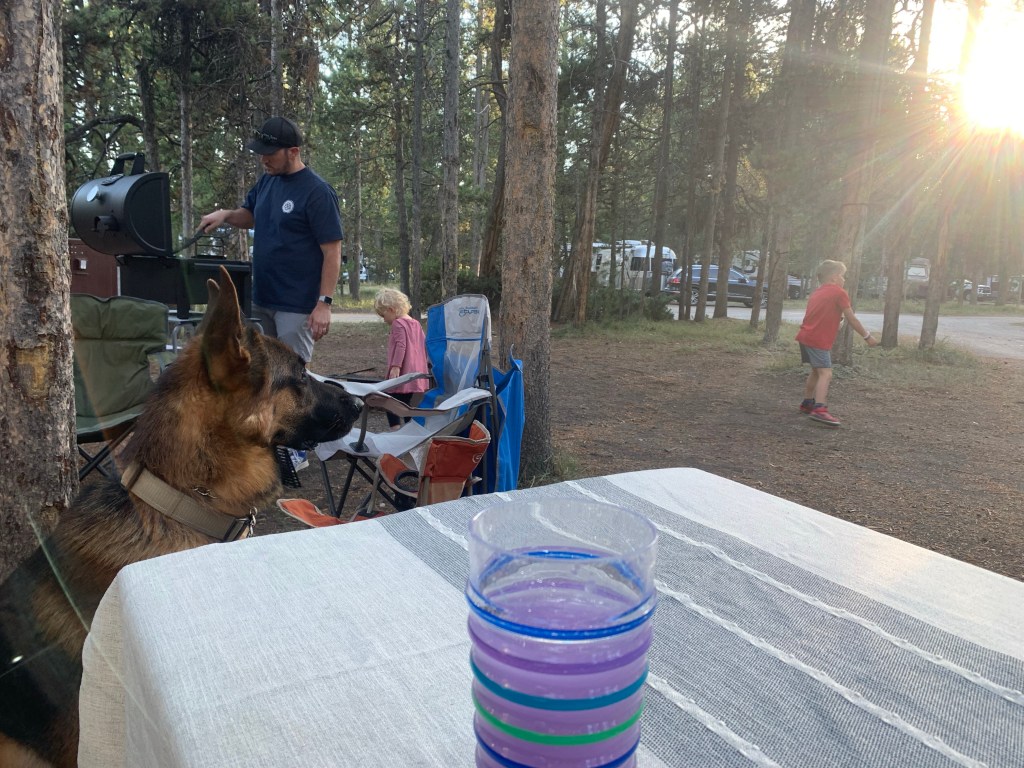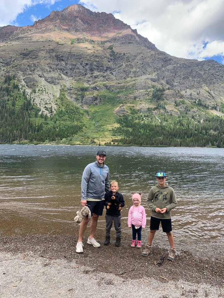 We love this campsite! It’s wooded, yet spacious enough for us to fit, and we enjoyed an evening with everyone in their happy place- Nick grilling steaks, the boys playing baseball, Carmen stacking rocks, and me planning the next day’s hikes from our picnic table while drinking some huckleberry lemonade we got from GNP.