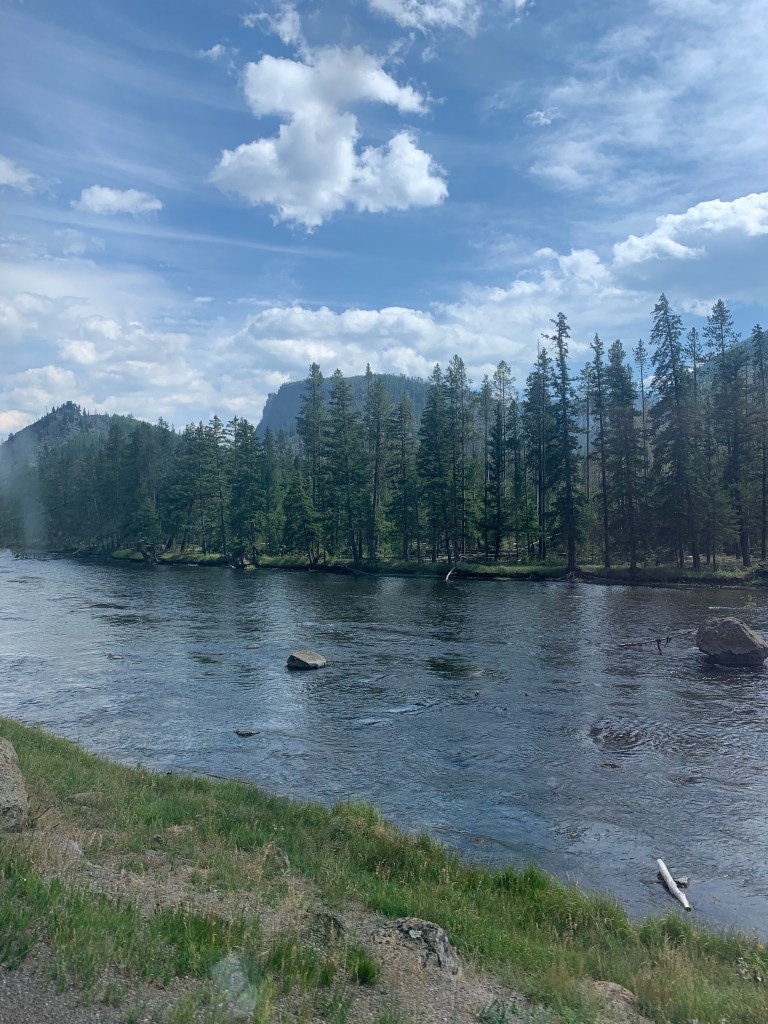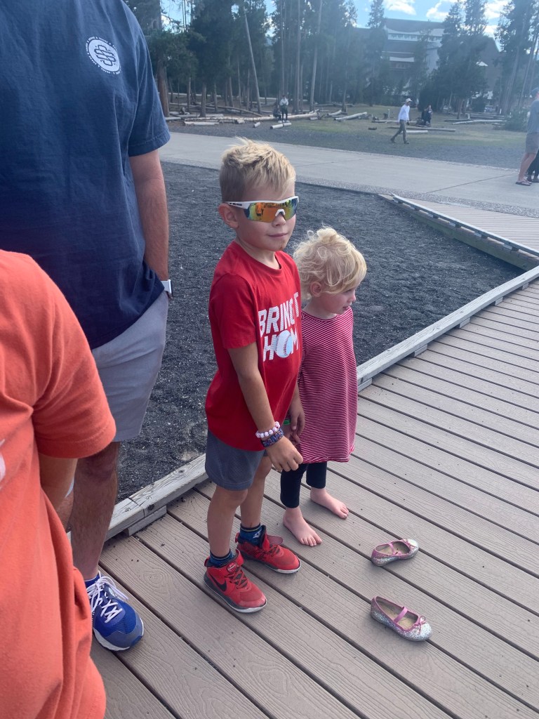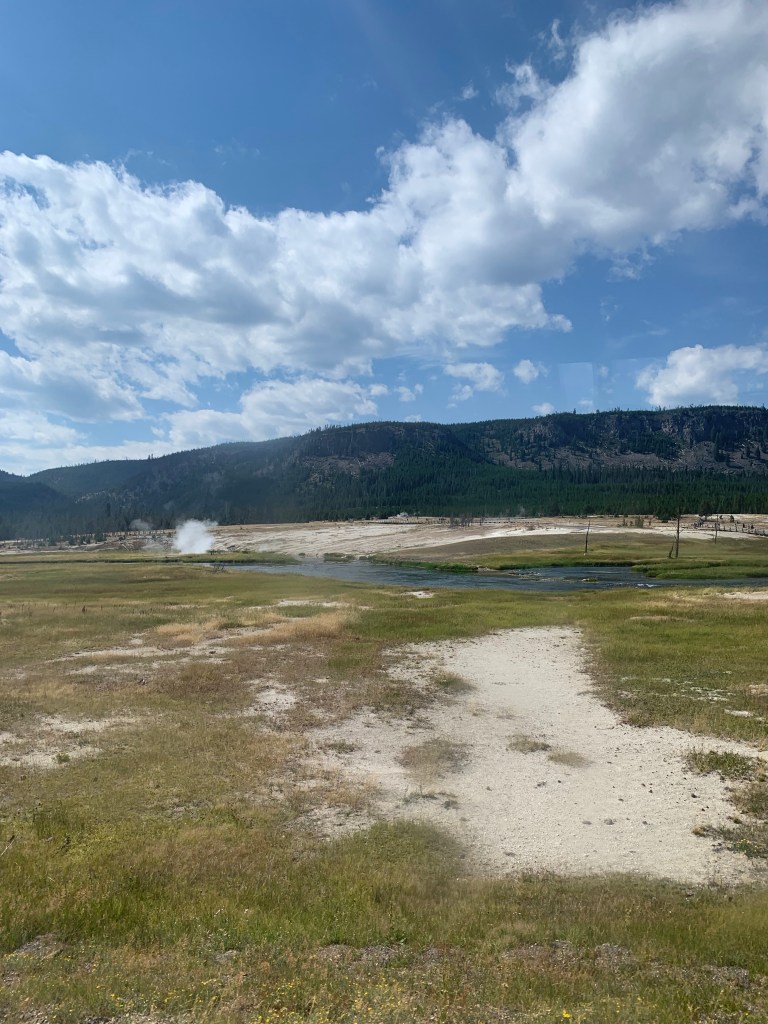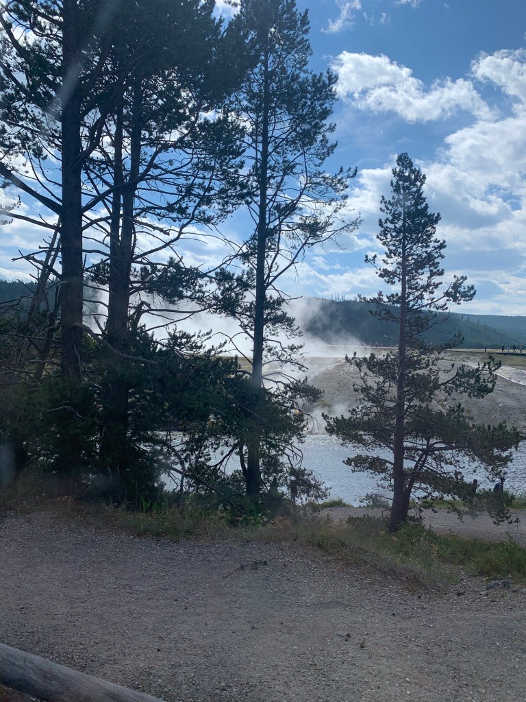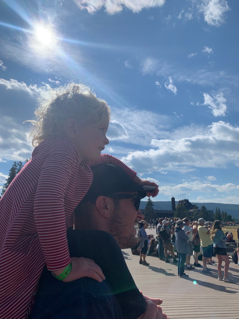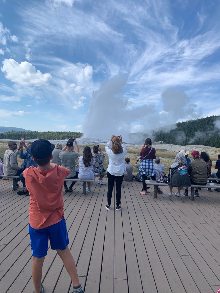 Around noon we realized we would be driving through Yellowstone and right beside Old Faithful- this is a park Nick visited in the 8th grade, but I’ve never been to before. We didn’t include it in this trip’s itinerary because his parents want to plan this trip with all of his siblings and families at some point in the future. However, since our route was taking us into West Yellowstone and straight by Old Faithful, we decided to plan a stop there and just see when the next predicted eruption would be.