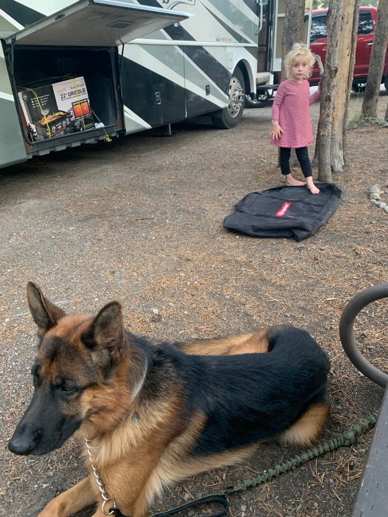 After seeing Old Faithful, we loaded back up and headed east and then south outside of Yellowstone and straight to our RV camp for the next two nights at the northern tip of Grand Teton National Park- Headwaters Campground at Flagg Ranch. Rarely do we get to stay in state or national parks because our rig is so long and we prefer full hookup. Upon research I had found that Grand Teton is perfect for big RVs, and thankfully was able to find reservations for 2 nights within a week of when we needed them! We wanted 3 nights but decided we would rather take 2 than pass up the opportunity!