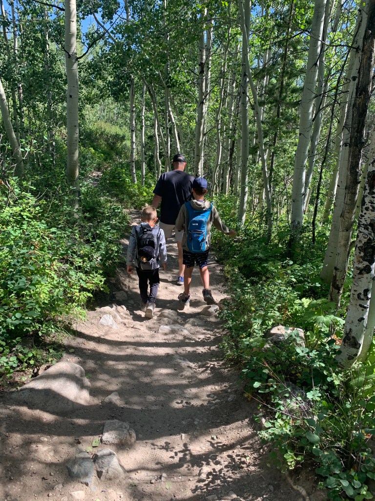 We made it into Estes Park about 4:30pm and returned to Elk Meadow RV Resort, our third time here. We were delighted to have a spot this time with trees around us! I started a load of laundry while the kids played putt putt and played on the playground, and then we grabbed a few groceries in town before Nick grilled burgers for dinner. (Can you tell he likes to grill?) 😉