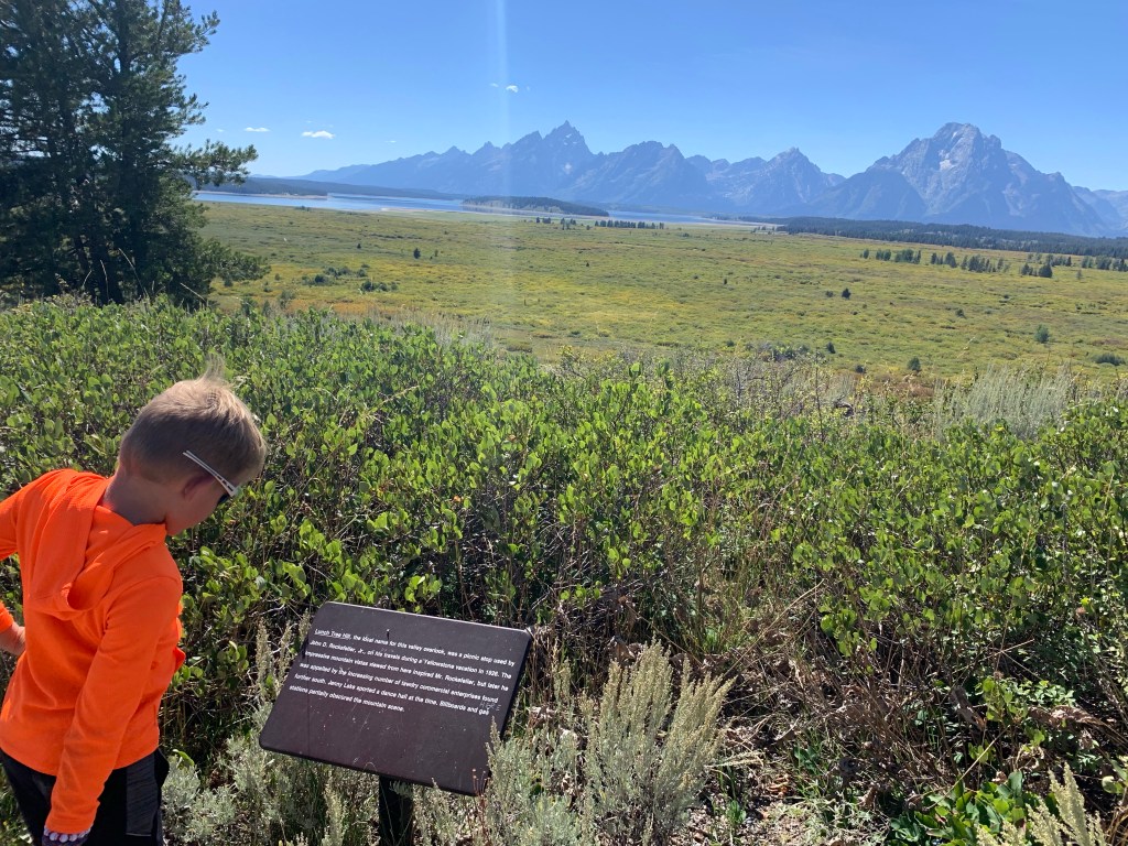 By the time we made it back to the truck, we were all hungry, and drove back north until we reached Jackson Lake Lodge, where we stopped for a late lunch (around 2pm) in their diner. This building alone has incredible views of the mountains and Jackson Lake. We then trekked up to Lunch Hill where Rockefeller used to picnic, who had a lot to do with turning the area into a National park.