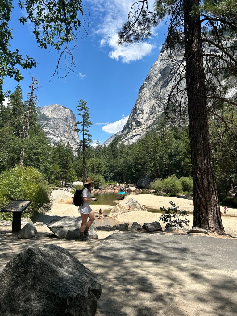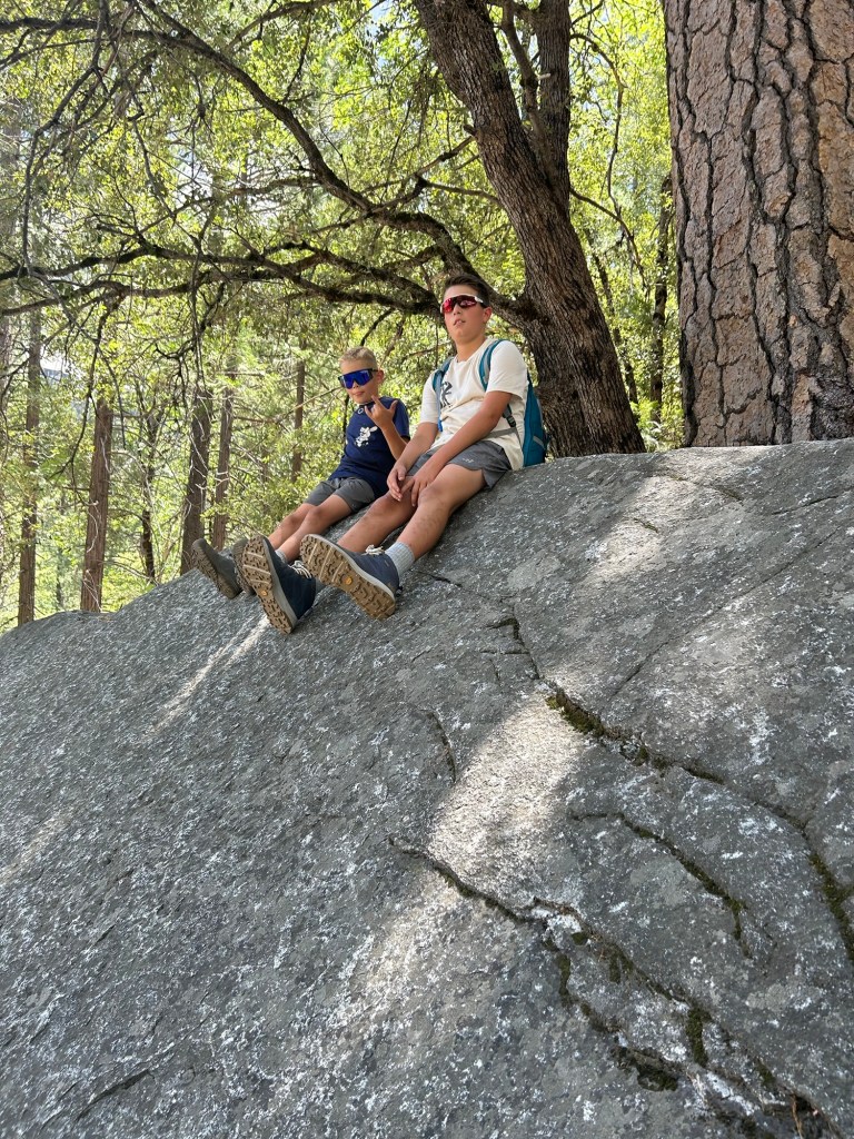 Mirror Lake is considered a seasonal lake, which means that currently it has zero water in it. I was aware of this but hadn’t told them until the end, so they were a little disappointed, but enjoyed walking in the dried up bowl of the lake some which obviously isn’t something you get to do every day. We also had a great view of Half Dome from where we sat and picnicked.