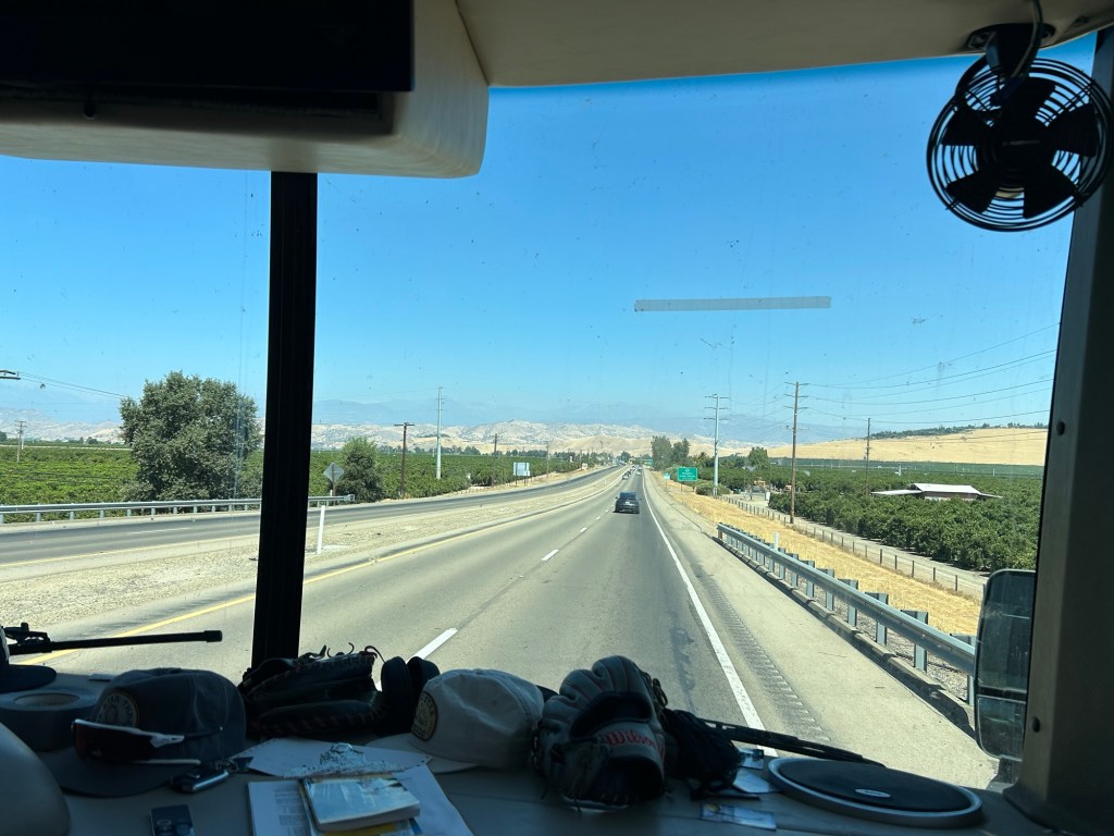 We spent our eighth day as a moving day from Yosemite down to the edge of Sequoia and Kings Canyon National Park. We knew the road out of our RV park would be challenging so we started with me driving the car to make the trip easier on the RV. I drove the first few hours and then we hooked back up at Merced. Our next stop was Costco in Fresno- Mom and the kids got in line for lunch while Nick and I grabbed some more groceries we needed for the rest of the week.