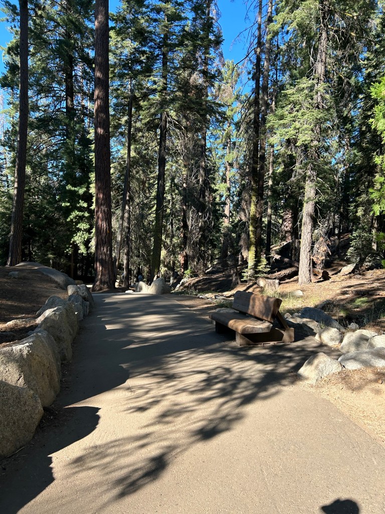 We then drove back the way we came to Beetle Rock, which allows for a panoramic view of the valleys, mountains, and cliffs. It’s a quick walk from the parking lot and I definitely recommend it. We walked down and past a museum to the Big Trees Trail, another wonderful walk, and returned to the museum to learn a bit more about Sequoias and the history of the park, and to grab a few souvenirs from the gift shop.