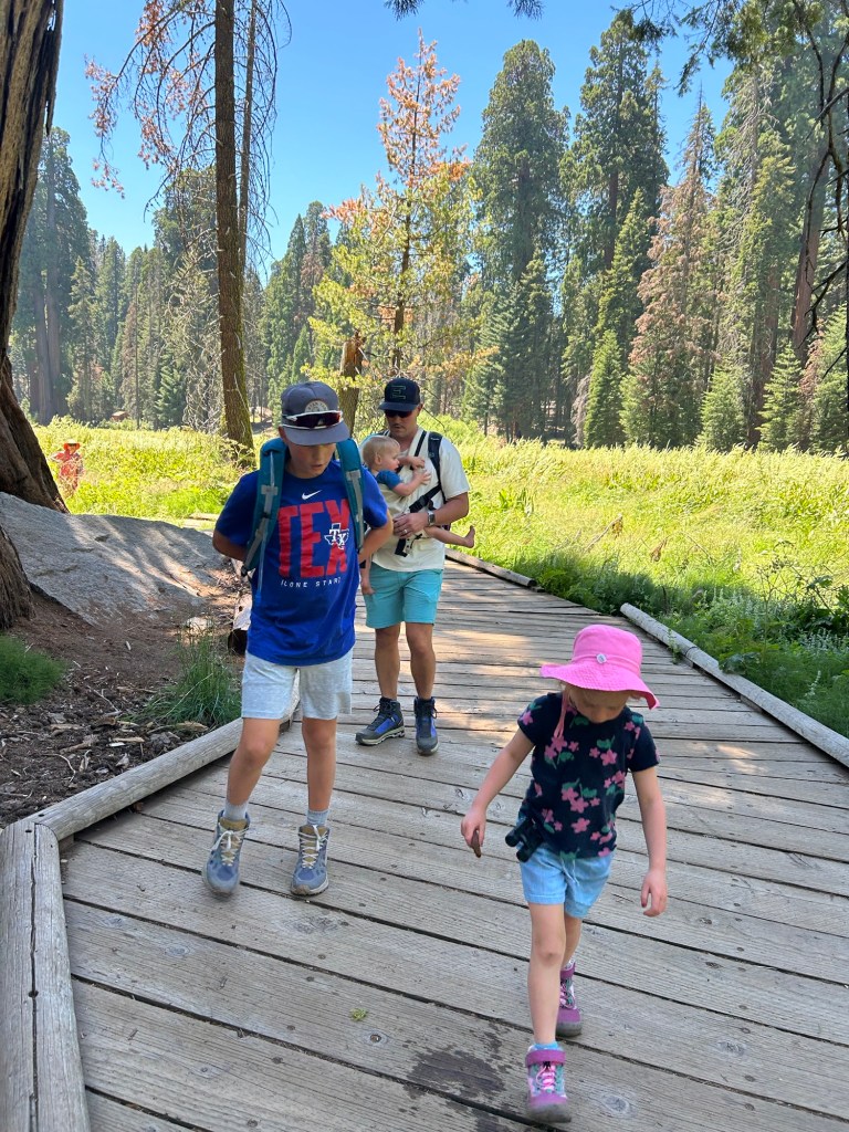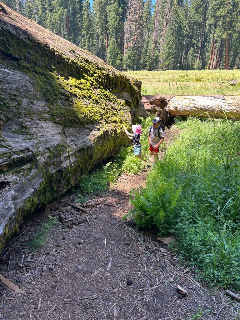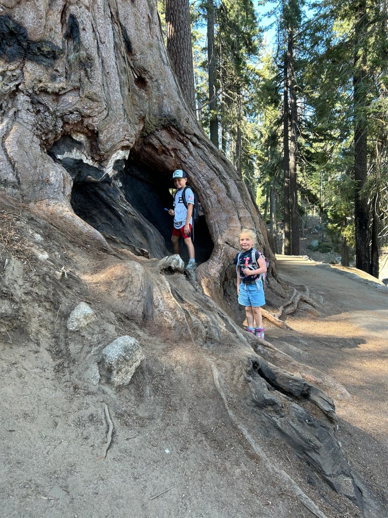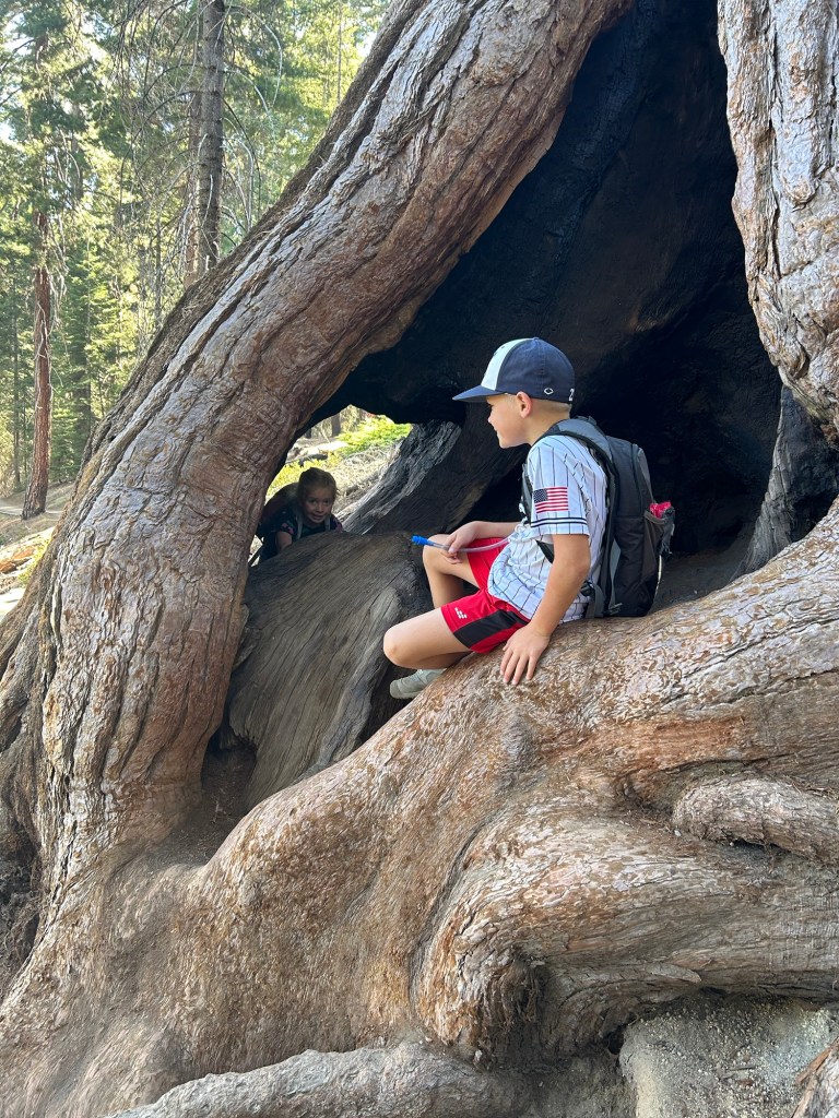 We started most of our days, like this one, with the most popular site, since crowds would fill up parking lots the later in the day it grew. Since the General Sherman Tree is near the Congress Trail, we did it next and it was maybe my favorite trail in this park. Mainly shaded, walking near little brooks and trails of running water, surrounded by both standing and fallen Sequoias, it was a quiet walk since we started it so early in the day. The Senate and Congress groups of trees were also impressive, and the kids enjoyed climbing through the caves in the hollows of the trees. We ate our picnic lunch once we returned to the car.