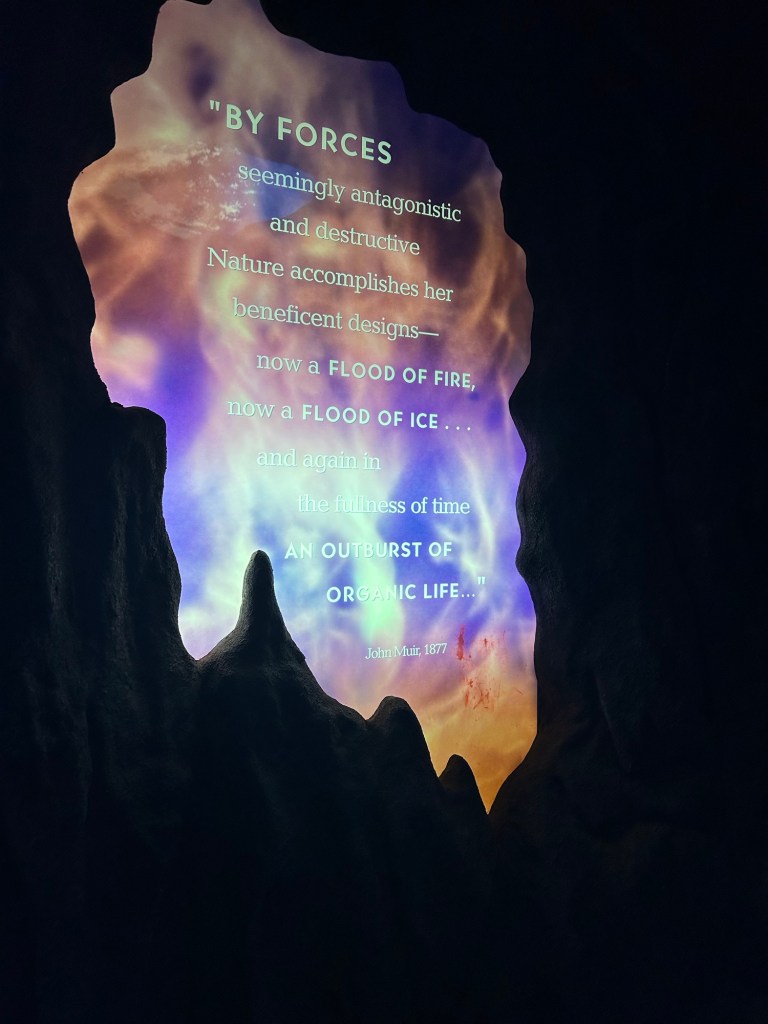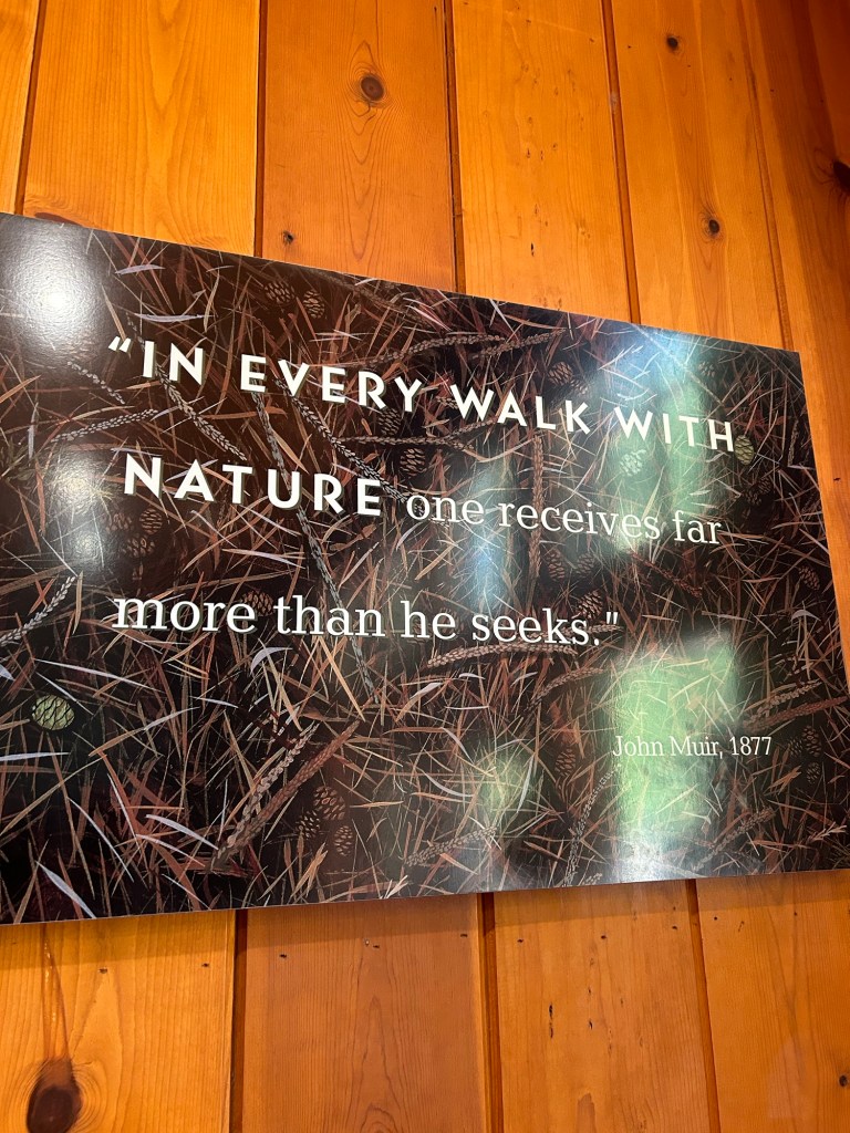 Our first stop was the General Sherman Tree – the largest tree in the world in terms of volume in its trunk – and it was the beginning of a day of impressive, impossible to describe massive trees. No matter how much our necks ached, we couldn’t resist staring straight up over and over again. I loved learning about the Sequoia groves and reading about the conditions needed for the giants to grow and thrive…God’s created and natural order for these trees is truly magnificent- there is a necessity for fires in order for them to thrive- even for some trees to die and fall in order to clear the canopy for others to grow. After reading a quote from John Muir (pictured below), Nick pointed out the passage in Romans 8 we recently walked through at our church, and how scripture says creation groans with eager longing, and from death comes new life. Incredible.